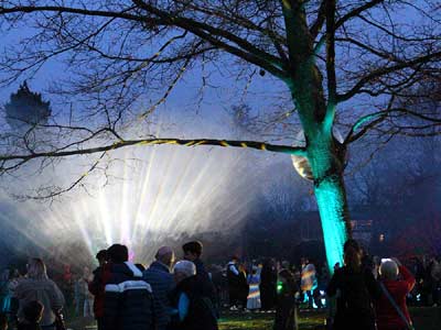 Bei dem „Umsonst und Draussen“-Event „Poensgenpark leuchtet“ zum 750-Jahrjubilaeum der Stadt Ratingen ist zwar nicht alles perfekt