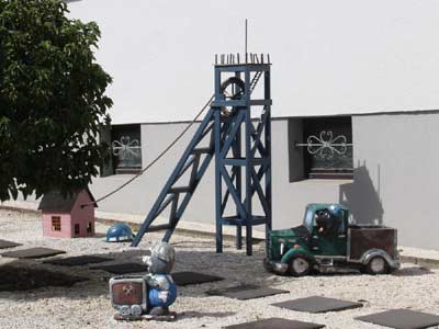 In einem Vorgarten in Quierschied ist ein Bergwerk nachgebildet.