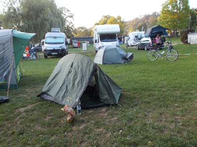 Fuer den Campingplatz muss ich fast bis nach Frankreich gehen.