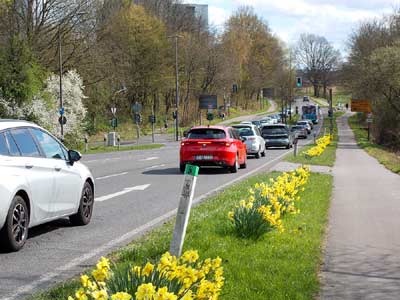 Links fuehrt die Ruhrstrasse nach Kettwig.