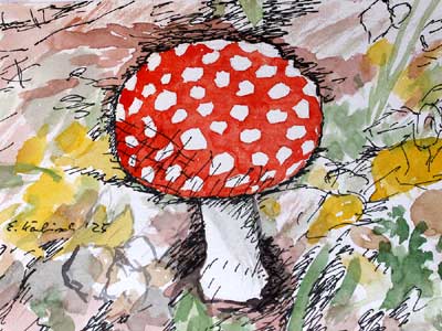 Auf dem Stinkesberg in Ratingen sehe ich einen praechtigen Fliegenpilz.