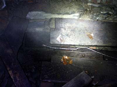 Es ist vielleicht noch 20 m Stollen vorhanden; der Rest ist eingestuerzt. Und man kann ein Stueck hineingucken.